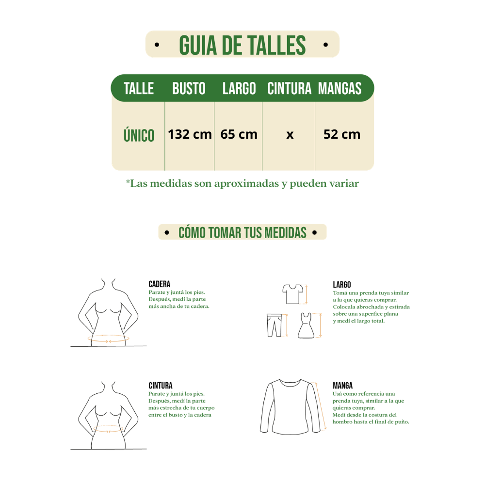 Viene en dos estilos: Corte clásico o corte oversized. Llevá el que más se adapte a cómo te guste usarlo, más suelto o menos.