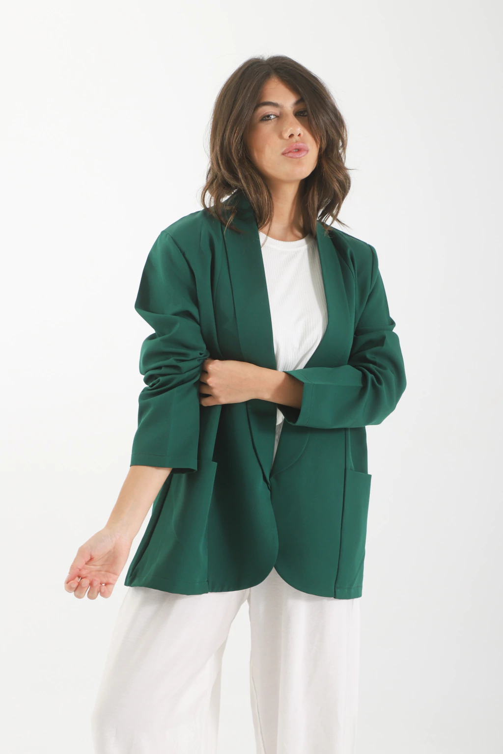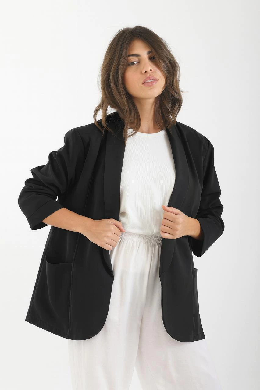 Blazer sastrero de corte oversize. Es relajado y con una caída fluída y cómoda.