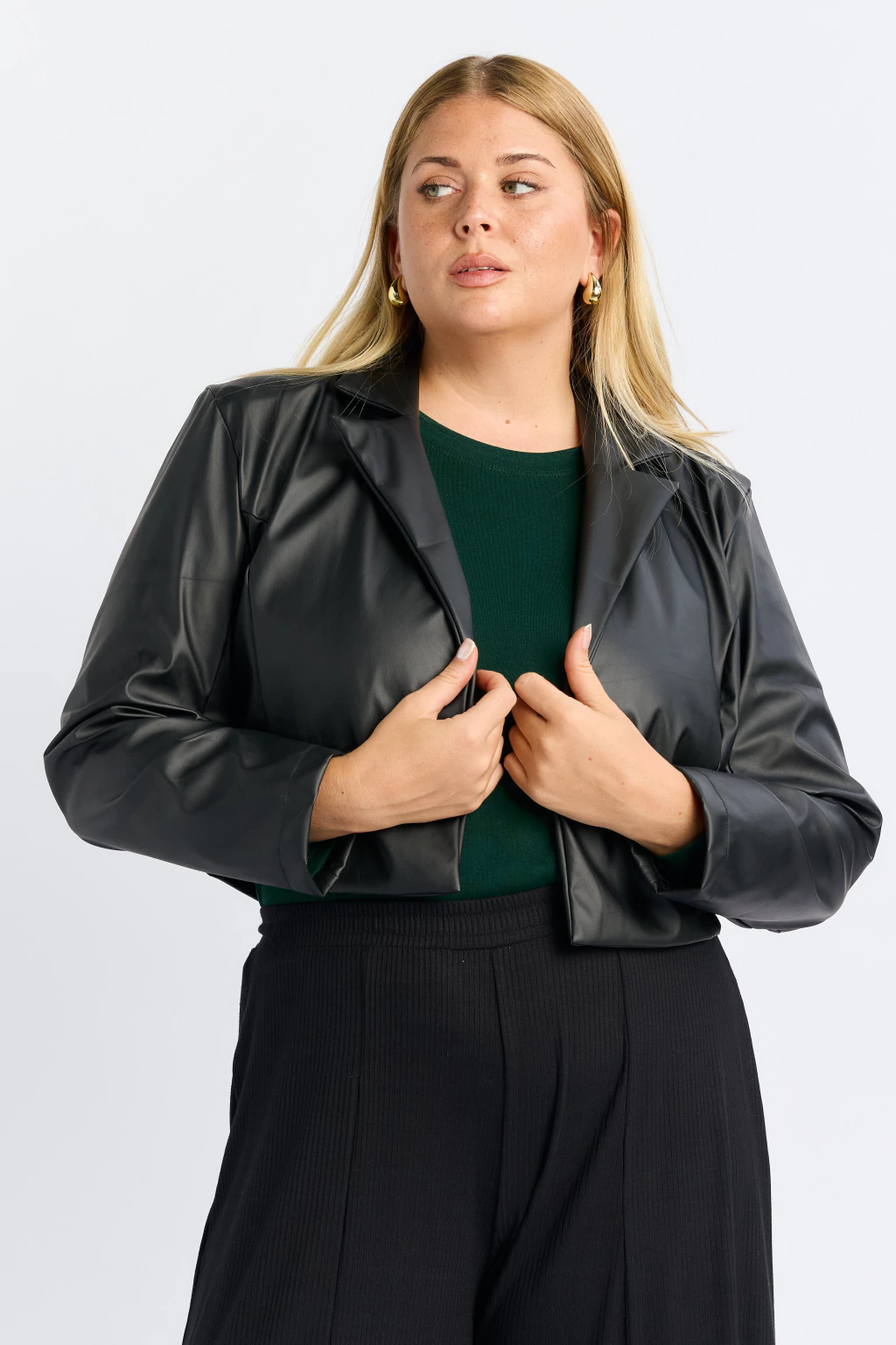 Chaqueta tipo blazer con hombreras y cuello sastrero.