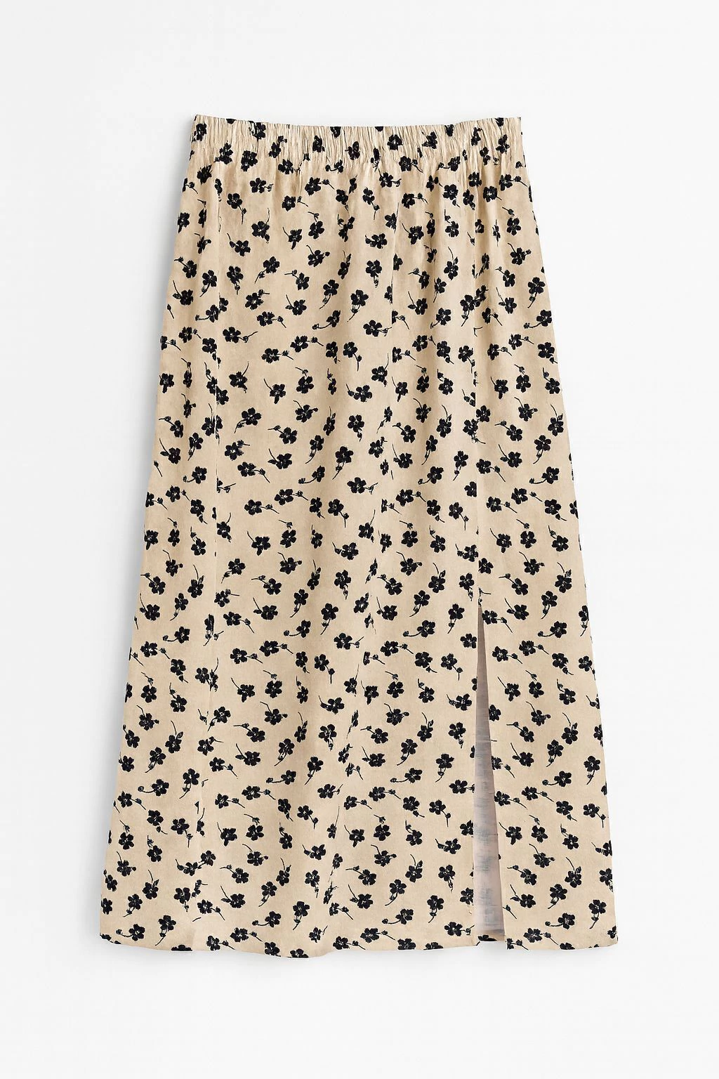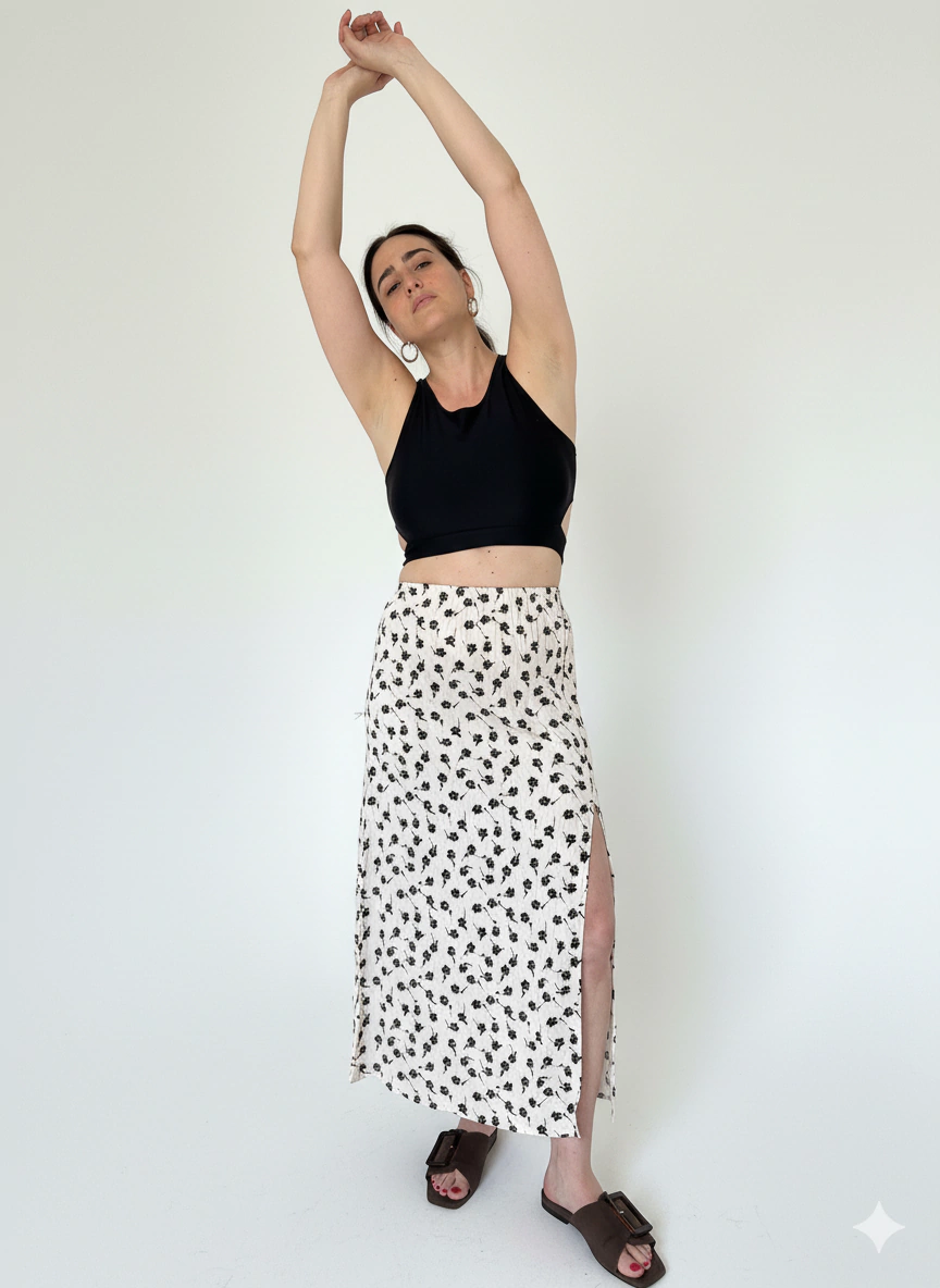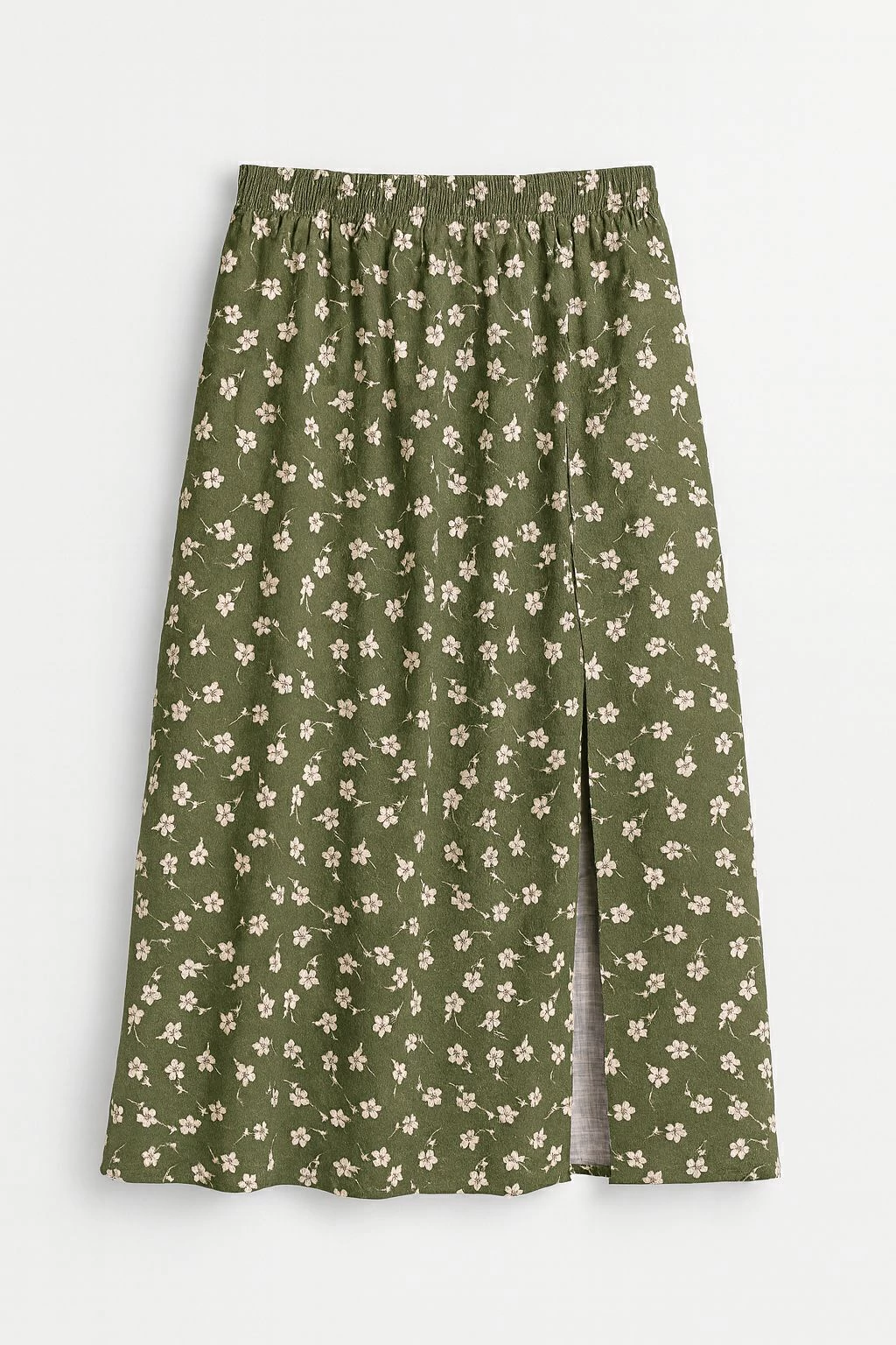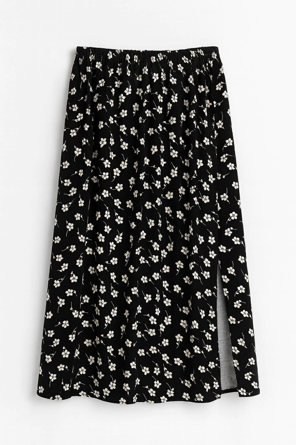 Pollera midi con tajo lateral. Tiene elástico en la cintura.