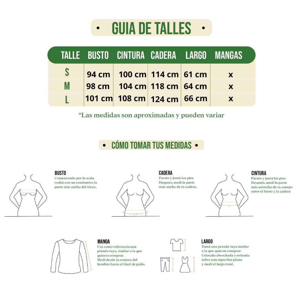 Talle S, M y L (Ver guia de talles)
